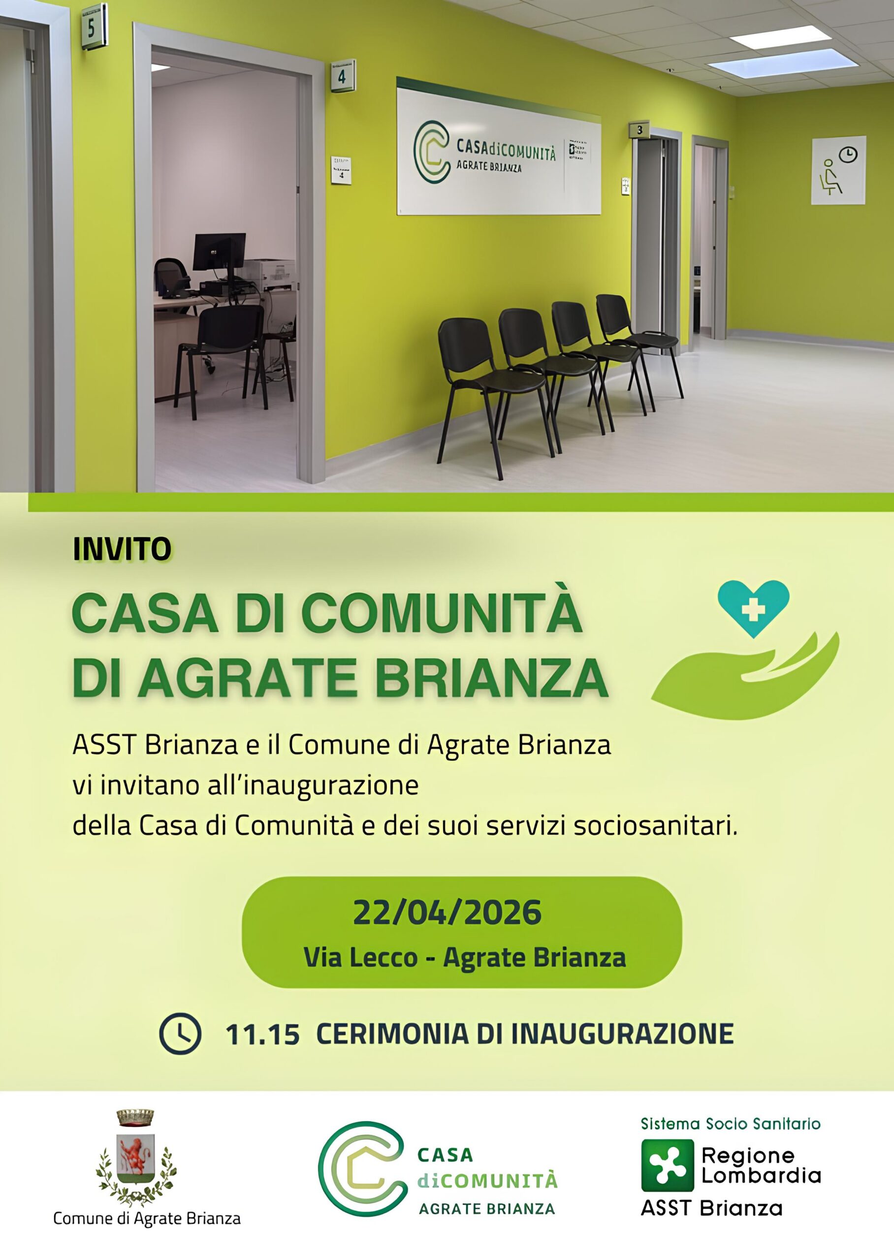 Mercoledì 22 aprile alle ore 11.15 sarà inaugurata la Casa di Comunità di Agrate Brianza.