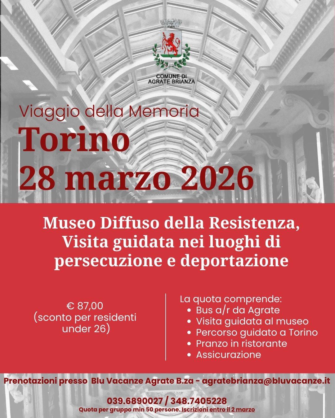 Anche per il 2026 il Comune di Agrate organizza un viaggio per la commemorazione del Giorno della Memoria.