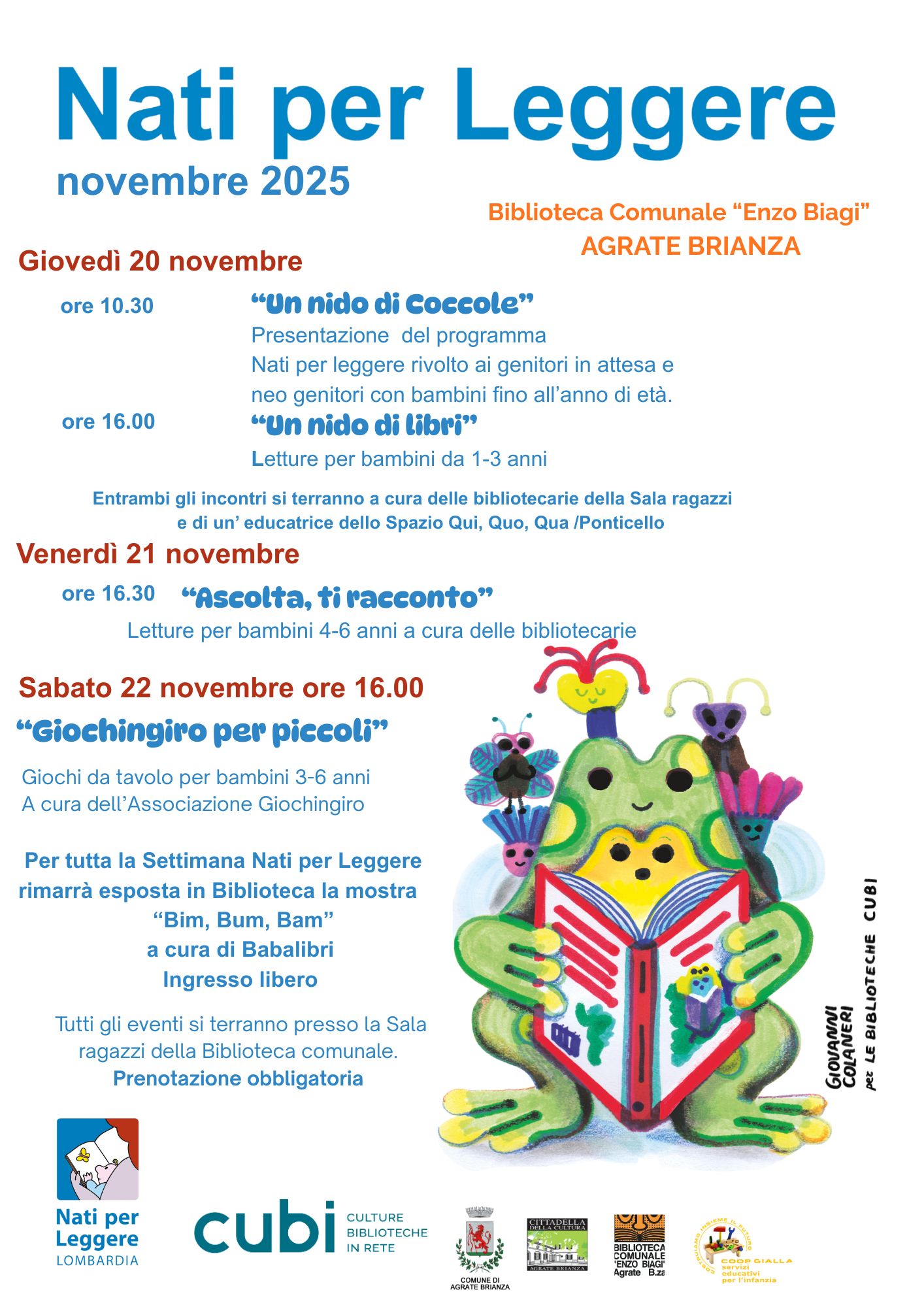 – ore 10.30 “un nido di coccole” presentazione del programma Nati per Leggere rivolto ai genitori in attesa e neo genitori con bimbi fino all’anno di età