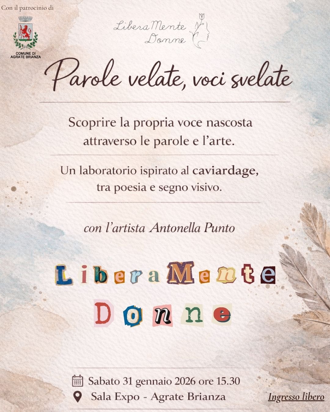 Il gruppo LiberaMente Donna propone un laboratorio al femminile per scoprire la propria voce nascosta attraverso le parole e l’arte.