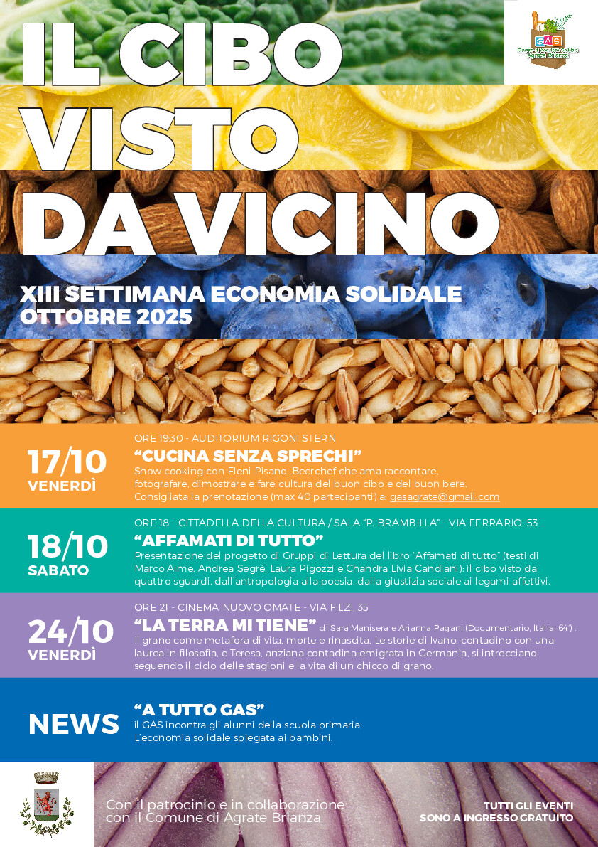 Dal 17 al 24 aottobre tre incontri (show cooking, gruppo di lettura e proiezione documentario) dedicati al tema.